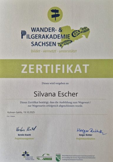 bei der Wander- & Pilgerakademie vom Landestourismusverband Sachsen erfolgreich abschließen.